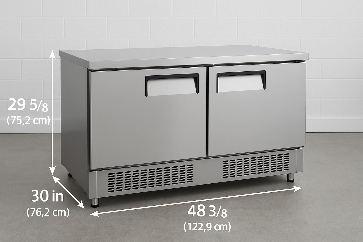 Under-counter refrigerators typically have a height between 32 and 36 inches to fit beneath standard countertops. Widths range from 27 to 72 inches depending on the number of doors or drawers, and depth is commonly around 30 inches. These units are perfect for bars, small cafes, or prep stations where space is limited, but access to chilled items is essential.